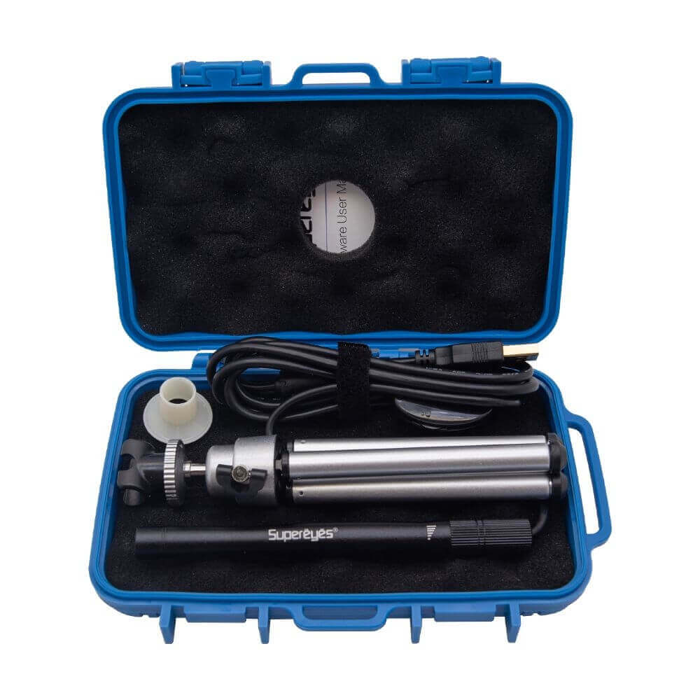 Supereyes B007 — настольный микроскоп с максимальным увеличением в 300 крат. Приспособление оснащено видеокамерой 2 Мп, которая подключается к ноутбуку через USB- кабель. Разрешение полученного изображения составляет 1600х1200. Предусмотрена верхняя светодиодная регулируемая подсветка. В комплекте есть штатив-тренога, компакт-диск с ПО и инструкция. Фокусировка настраивается вручную. Аппарат совместим с операционными системами Windows 7/8/XP/Vista/Mac OS/Linux.